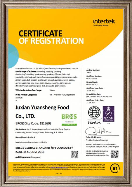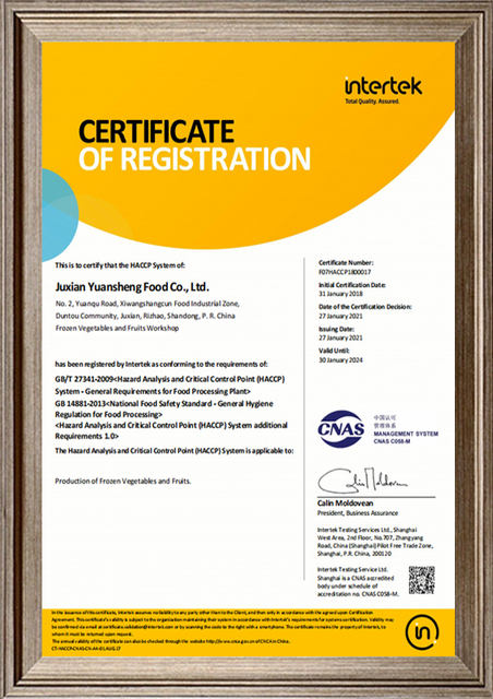 Juxian Yuansheng Food Co., Ltd. основанное в 2016 году частное акционерное предприятие по экспорту замороженных овощей.